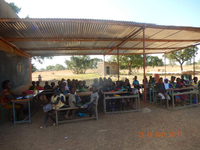 Les travaux devaient être finis fin mai 2018, pour accueillir les élèves en juin, période où commence la saison des pluies. Le 15 juin 2018, la classe était opérationnelle. Le village entier a participé à cette construction. Ils ont, grâce à l'aide de M'Akako, acheté des agrégats et des matériaux, puis ils ont, eux même, réalisé les briques, préparé le sol pour les fondations, coulé les poteaux, réalisé le toit, les femmes du village ont apporté l’eau et le gravier qui manquait, tout cela dans un bel enthousiasme.